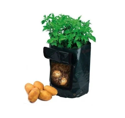 В Европе сумки, предназначенные для выращивания картофеля используются многие десятки лет, и сейчас этот тренд дошёл до нас. Мешком для выращивания картофеля называют многоразовое изделие, у которого есть специальные прорези для вентиляции, а также окошки, предназначенные для изъятия клубней картофеля. Благодаря использованию таких сумок вы сможете хорошо сэкономить площадь на участке, так как такие сумки можно поставить возле стен построек или даже на грядках в самых солнечных местах. Кам больше не придётся засыпать посаженную картошку рыхлой землёй, сорняки там тоже не растут. Благодаря таким сумкам молодые растения будут надёжно защищены от вредителей. Так как вода в таких сумках не застаивается, клубни не будут гнить. Выкапывать их не нужно - просто откройте специальное окошко у сумки и вытащите клубни. Вам придётся лишь увлажнять грунт, а также следить за тем, как растут ваши овощи.