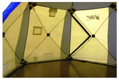 - У шовных соединений теплого палаточного пола герметичная клеевая пленка, не пропускающая влагу, снег, внутри сухо.