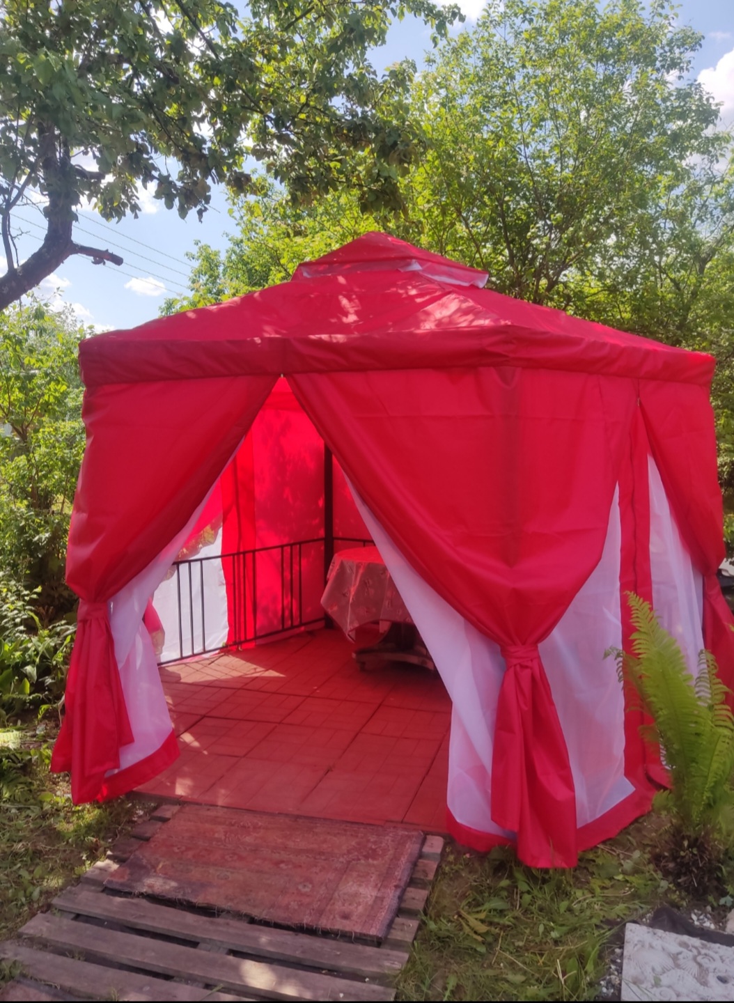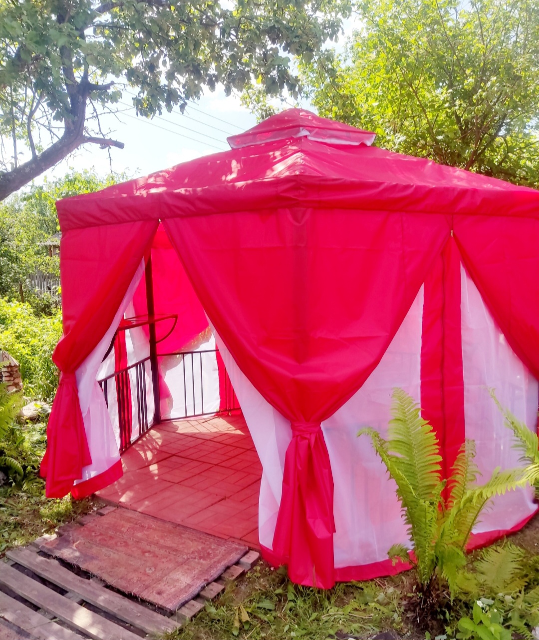 У нас вы можете купить тенты и стенки для шатров абсолютно любых размеров и форм. Мы изготавливаем данную продукцию из надёжных и безопасных материалов. Все наши тенты защищены от влаги, ветра, насекомых, а также внешних воздействий. Вся продукция изготавливается на современном швейном оборудовании. При заказе вы сможете получить изделие, имеющее ровные и аккуратные швы, скроенное и сшитое по размерам вашего шатра. Для изготовления мы используем только те нити, которые не подвергаются гниению, а в местах повышенной нагрузки мы делаем двойные швы. Такой шатёр хорошо подойдёт для обустройства летних кафе, проведения праздников, обычного отдыха с друзьями.
