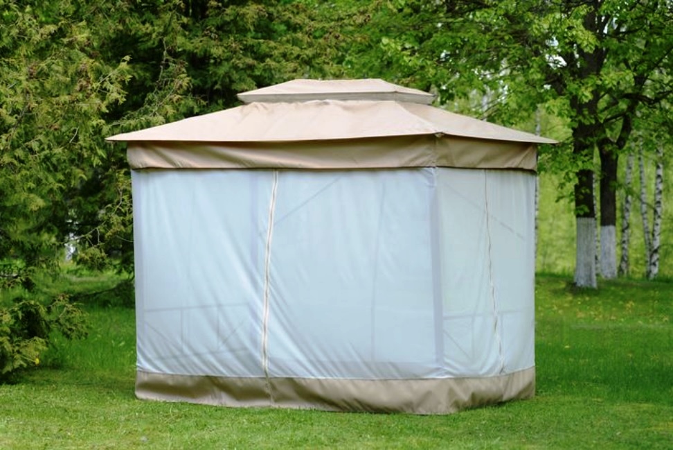 Краткое описание «Текстильный комплект на шатер-беседку садовую бежевый, ТЕНТ + СЕТКА»