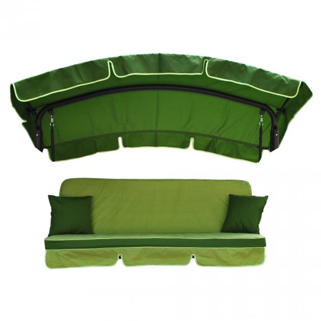 Данный сменный комплект подушек предназначен для садовых качелей, он подходит для длины сидения 170 см, размер составляет 200 на 118 см. В комплекте находится матрас, тент, а также две подушки. Крыша, матрас и подушки изготовлены из такой ткани, как тексилк, эта ткань совершенно не выгорает от солнечных лучей, на ней не появляется плесень, она способна защитить от ультрафиолета. При необходимости наполнитель можно вытащить, а чехол с лёгкостью постирать. Толщина матраса составляет 7 см. Для того, чтобы приобрести эту продукцию, вам просто нужно добавить в корзину и оформить заказ. При возникновении вопросов вы всегда можете обратиться к нашим менеджерам.